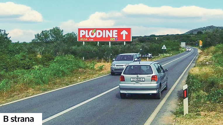 Dvostrani bilboard na Korčuli. Nalazi se na glavnoj, prometnoj cesti koja vodi do Žrnova.